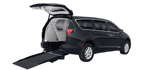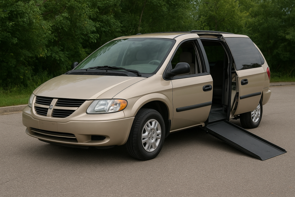 Dodge Caravan – Side loader wheelchair accessible van equipped with a side ramp with capacity 1wheechair/ scooter plus 2 ambulatory passengers